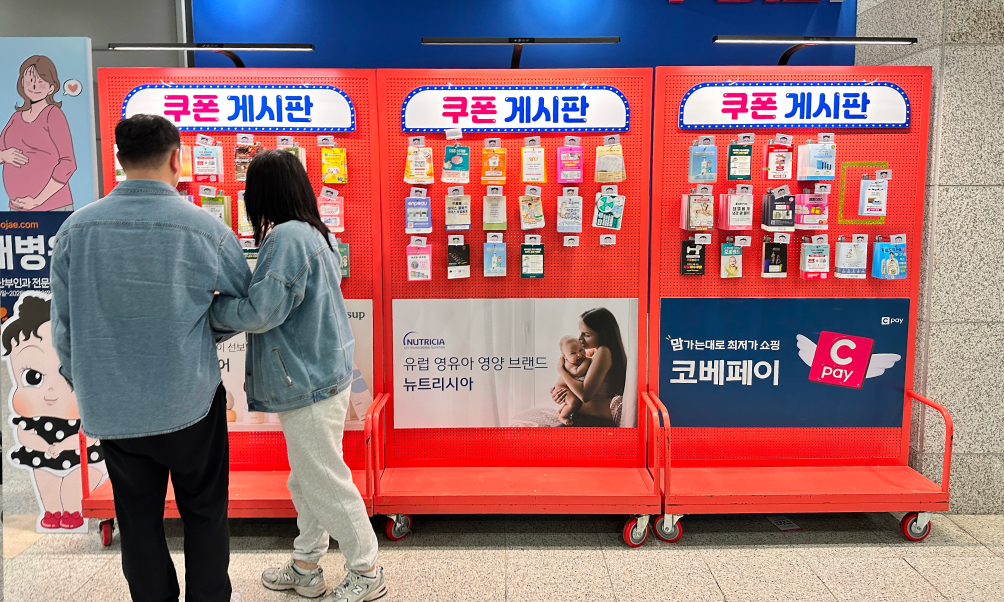 전시장 입구 쿠폰게시판 하단